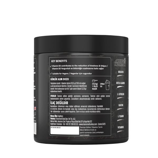 Yorgunluğu Geciktirir: İçeriğindeki beta-alanin ve citrulline malate, kas yorgunluğunu geciktirerek daha uzun süre etkili antrenman yapmanıza yardımcı olur.