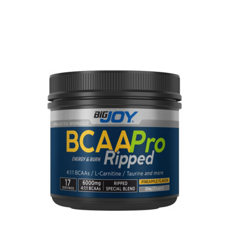 BIGJOY BCAAPro Ripped toz formunda bir BCAA ürünüdür. BCAA’lar esansiyel amino asitler arasında farklı özelliklere sahip olan 3 amino asitten oluşur; lösin, isolösin ve valin. Bu amino asitler protein sentezini başlatan, büyümeyi teşvik eden ve kaslarınızın parçalanmasını önleyen en önemli amino asitlerdir. Araştırmalar BCAA takviyesi alan kişilerde kas tamirinin hızlandığını ve yeni kas oluşumunun arttığını göstermektedir.