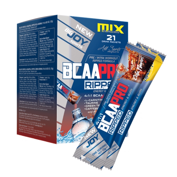 BIGJOY BCAAPro Ripped toz formunda bir BCAA ürünüdür. BCAA’lar esansiyel amino asitler arasında farklı özelliklere sahip olan 3 amino asitten oluşur; lösin, isolösin ve valin. Bu amino asitler protein sentezini başlatan, büyümeyi teşvik eden ve kaslarınızın parçalanmasını önleyen en önemli amino asitlerdir. Araştırmalar BCAA takviyesi alan kişilerde kas tamirinin hızlandığını ve yeni kas oluşumunun arttığını göstermektedir.