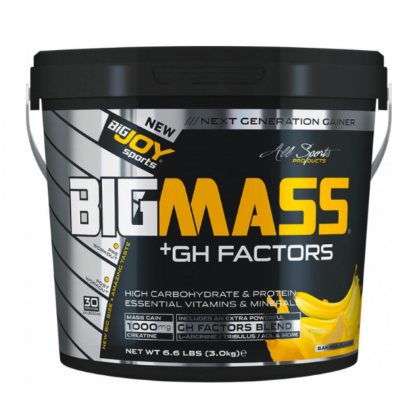 BigJoy Big Mass +GH Factors, kas hacmini artırmak isteyen sporcular için özel olarak formüle edilmiş bir gainer ürünüdür. İçeriğindeki yüksek karbonhidrat ve protein dengesi sayesinde, vücuda ihtiyaç duyduğu enerjiyi sağlayarak hacim kazanımını hızlandırır. Her porsiyonunda sunulan 26 gram protein, kas gelişimini desteklerken, eklenen GH (Growth Hormone) faktörleri büyüme hormonlarının doğal yollarla uyarılmasına katkı sağlar.