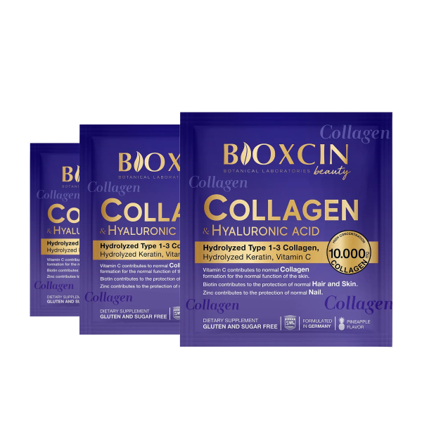 B’oxcin Beauty Collagen saşe formu, hyalüronik asit, hidrolize keratin, biotin, E ve C vitaminleri ile zenginleştirilen 10.000 mg hidrolize Tip I ve Tip III kolajeni bir arada bulunduran takviye edici gıdadır.