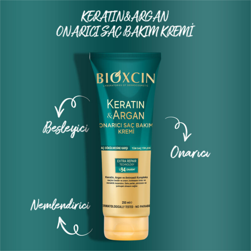 Bioxcin Keratin ve Argan Onarıcı Saç Bakım Kreminin Öne Çıkan Özellikler: