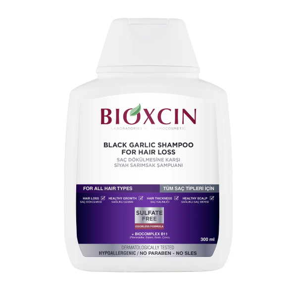 Saç dökülmesine karşı özel olarak geliştirilen Bioxcin Siyah Sarımsak Şampuanı, güçlü bitkisel içeriğiyle saç köklerini besler ve güçlendirir. Siyah sarımsak özü, yüksek antioksidan içeriği sayesinde saç tellerini kökten uca besleyerek daha dolgun ve sağlıklı görünmesini sağlar.