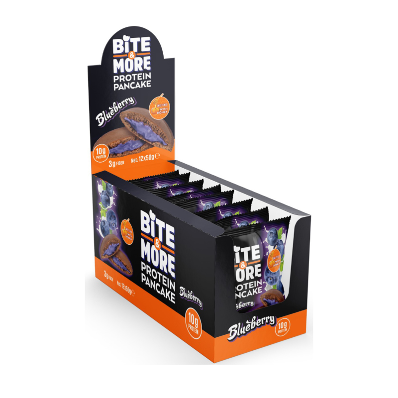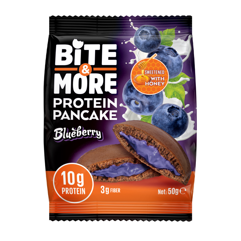 Bite More Proteinli Pankek Blueberry ile sağlıklı ve lezzetli atıştırmalık keyfini keşfedin! Her bir 50 gramlık pankek, 10 gram protein içeriğiyle günlük protein ihtiyacınızı karşılamaya yardımcı olur. Yaban mersini aromasıyla zenginleştirilmiş bu pankekler, sporcular ve sağlıklı yaşamı benimseyenler için ideal bir seçenektir.