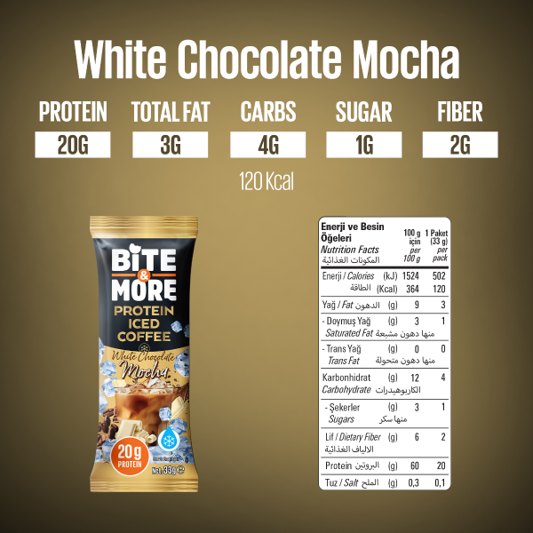 Bite More Proteinli Soğuk Kahve White Chocolate Mocha 33 gr 10 Adet