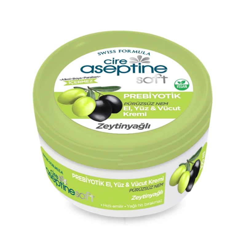 Cire Aseptine Soft Prebiyotik Zeytinyağlı Krem, cildin doğal dengesini koruyarak yoğun nemlendirme sağlar. Zengin içeriği sayesinde kuru ve hassas ciltler için ideal bir bakım sunar.