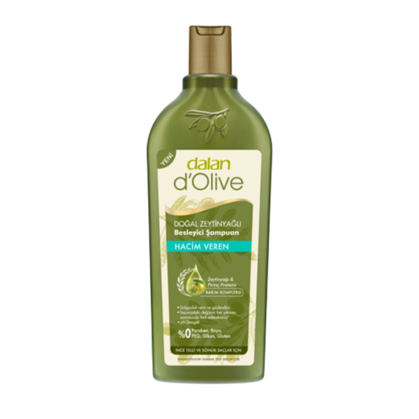 Dalan d'Olive Hacim Veren Şampuan, ince telli ve hacimsiz saçlara sahip olan herkes için uygundur. Doğal içeriklerle zenginleştirilmiş formülü sayesinde günlük kullanıma da uygundur.