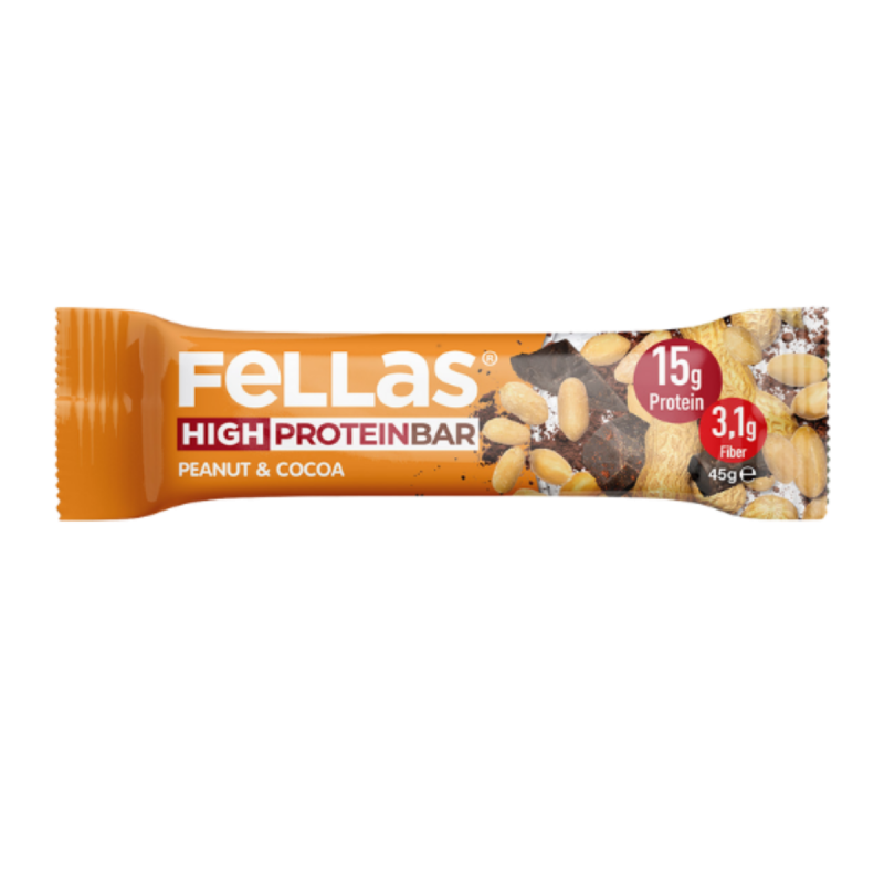 Fellas Yüksek Protein Bar Yer Fıstığı ve Kakao 45g x 12 Adet | Güçlü ve Lezzetli Protein Desteği