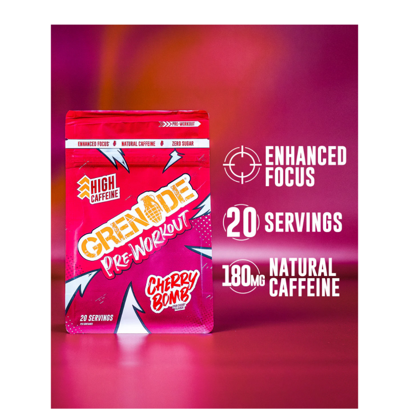 Grenade Pre-Workout Cherry Bomb, sporcuların antrenman öncesi en büyük destekçisi. Gücünü ve dayanıklılığını artırmak için hemen dene!