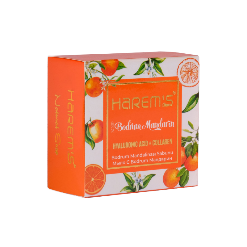 Harems Bodrum Mandalinası Sabunu, Bodrum'un ferahlatıcı mandalina kokusunu banyonuza taşıyan özel bir sabundur. Doğal mandalina özleri ile zenginleştirilmiş bu sabun, cildinizi nazikçe temizlerken aynı zamanda canlandırır ve tazeler. Doğal içeriklerle formüle edilen sabun, cildinizin doğal nem dengesini korur ve yumuşak bir his bırakır.