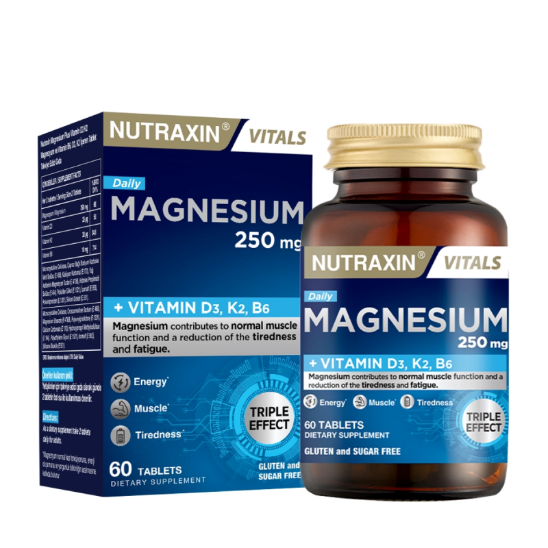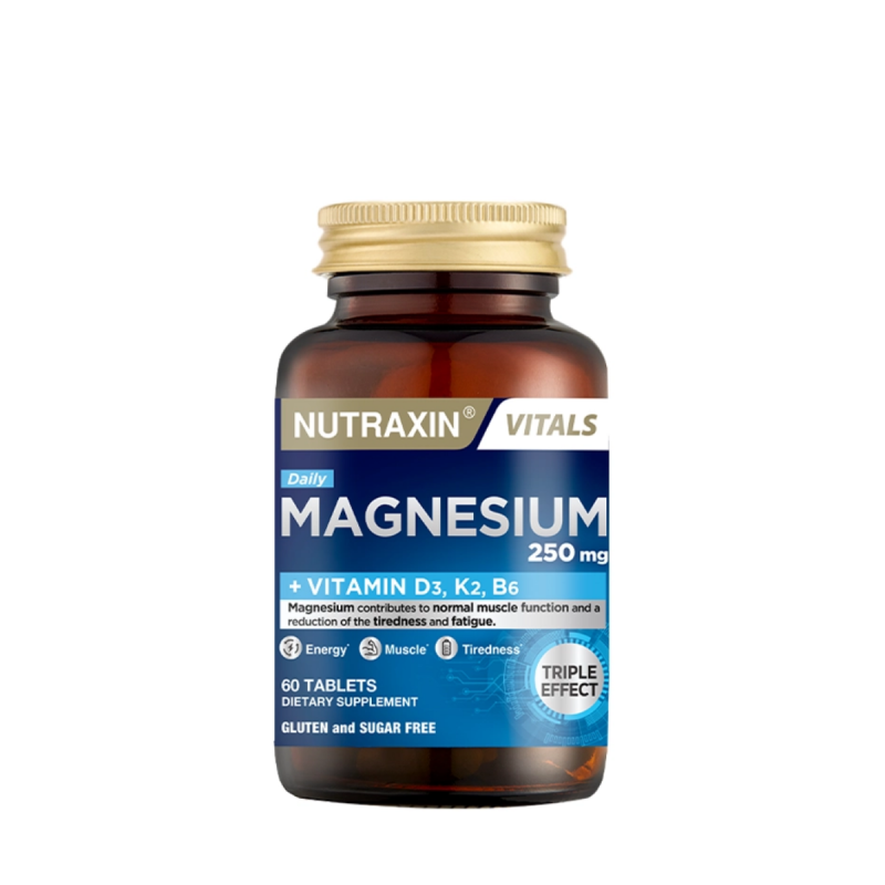 Nutraxin Magnesium Daily 250 mg – Yüksek Emilim Kapasiteli Magnezyum Takviyesi