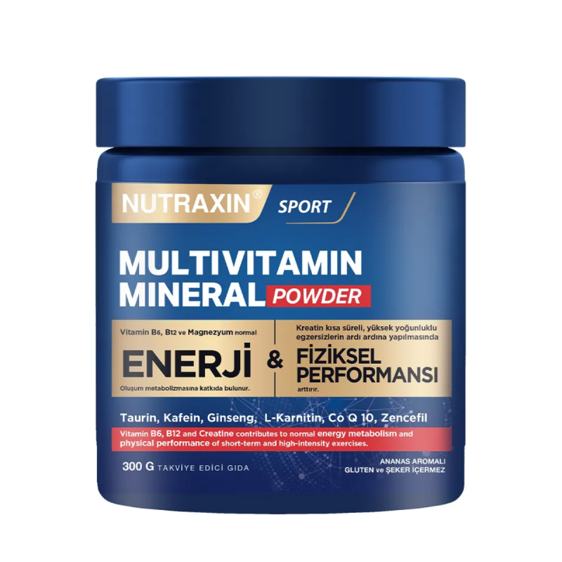 Nutraxin Multivitamin & Mineral Powder, vitamin, mineral ive amino asit çeriğiyle günlük beslenme düzeninizi desteklemek üzere formüle edilmiştir. Toz formu sayesinde suyla kolayca karıştırılabilir, pratik tüketim avantajı sunar. Ananas aroması ile keyifli bir kullanım deneyimi sağlar.