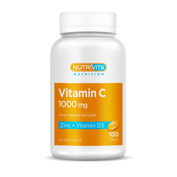 Nutrivita Vitamin C 1000 mg, çinko ve D3 vitamini ile zenginleştirilmiş özel bir formüle sahiptir. Günlük beslenme rutinini desteklemek isteyenler için geliştirilmiş bu ürün, her tablette 1000 mg C vitamini, çinko ve D3 vitamini içerir.