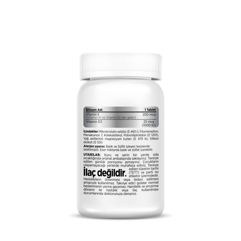 Nutrivita Vitamin K1, K2+D3, özenle formüle edilmiş içeriğiyle günlük beslenme rutinine destek olmak için tasarlanmıştır. Vitamin K1, K2 ve D3’ü bir araya getiren bu ürün, dengeli bir yaşam tarzını benimseyen bireyler için pratik bir kullanım sunar.
