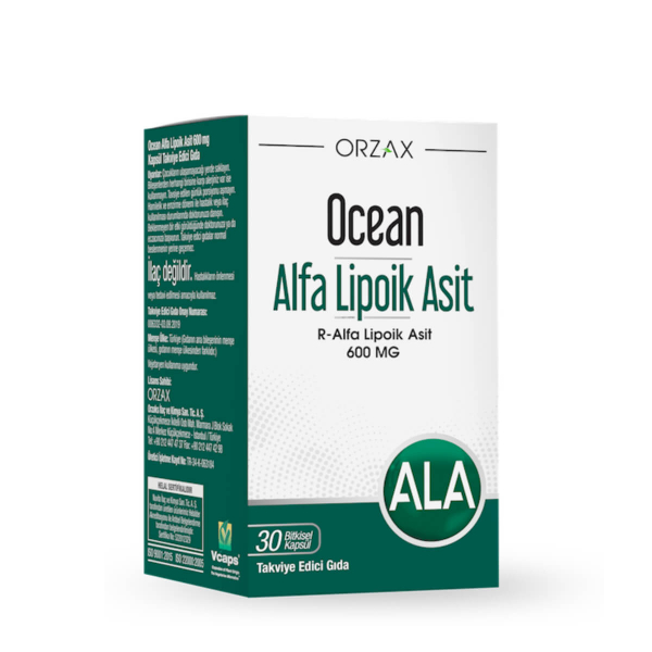 Ocean Alfa Lipoik Asit, her kapsülde 600 mg alfa lipoik içeren takviye edici bir gıdadır. İçeriğinde ki V-Caps kapsülleri bitkisel bir üründür. Alfa lipoik asit (ALA), suda ve yağda çözünebilen bir koenzimdir.