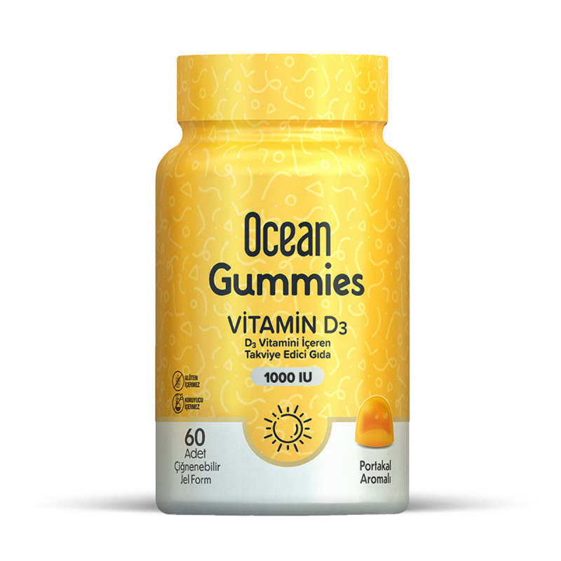 D vitamini, vücutta önemli görevleri olan yağda çözünen bir vitamindir. Ocean Gummies D3 ürünlerinde koruyucu katkı maddesi, yapay aroma verici ve ilave şeker içermez. Yetişkinler için güvenli kullanım sunar.