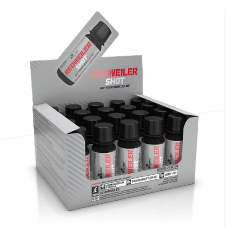 Redweiler Shot, alanin, taurin, kafein, tirozin ve paprika (kırmızı biber cinsi) maddelerini uygun miktarlarda kombine eden, sıvı formda bir antrenman öncesi (Pre workout) ürünüdür.