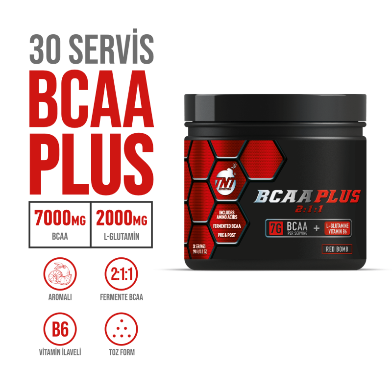 TNT BCAA Plus, ayrıca ekstra destek için Glutamin ve B6 vitamini ile zenginleştirilmiştir.