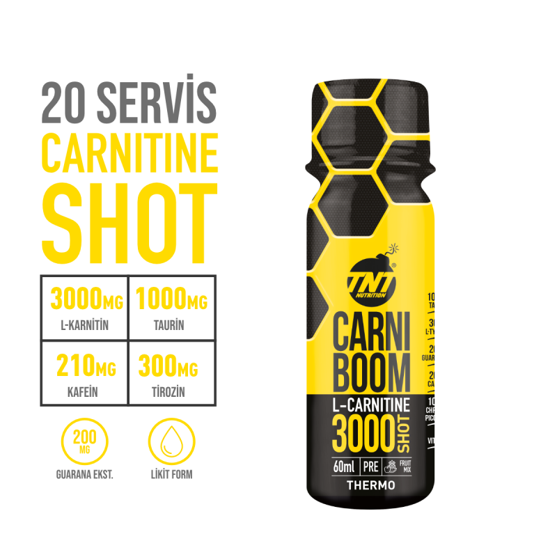 TNT Carniboom® sıvı formda olup, L-Karnitin amino asidinin özelliklerinden en sağlıklı ve verimli şekilde yararlanmanız için formülize edilmiş ve geliştirilmiş gıda takviyesidir.